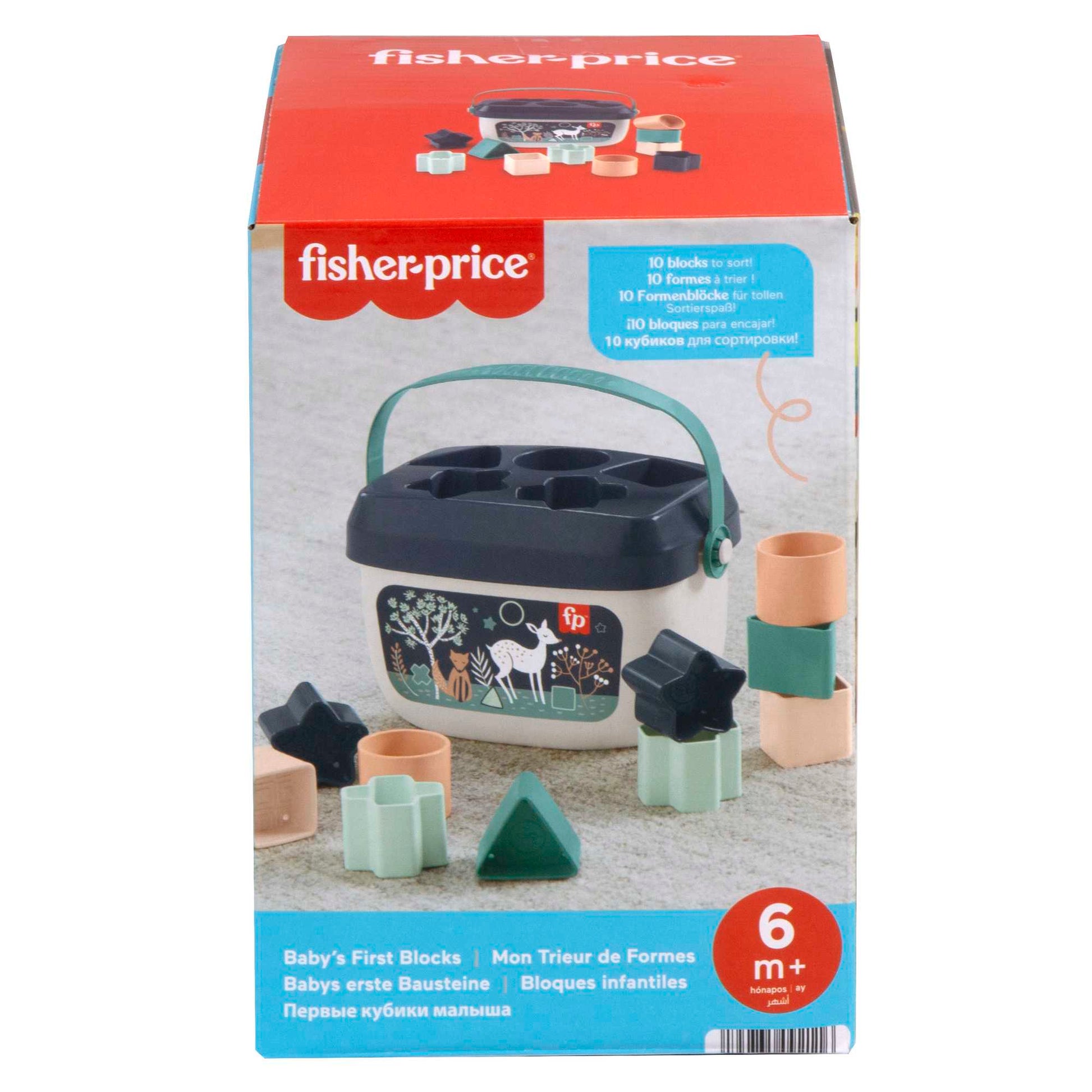 Get your baby ready for a bucket of fun with the Baby's First Blocks set from Fisher-Price®. These chunky, stylish blocks help introduce your little one to colors and shapes as they sort, stack and drop the blocks through the slots in the bucket lid. Empty the bucket to start the fun over again and again! And with an easy-carry handle, you can take Baby's First Blocks wherever you and your baby go! Plus, all that block-grasping and shape-sorting play helps strengthen your baby's hand-eye coordination and dexterity while enhancing their problem-solving skills.